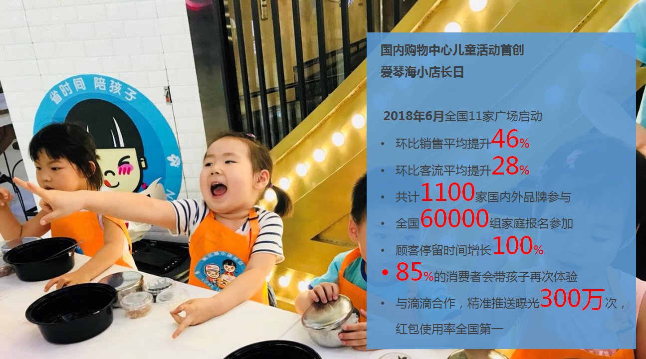 我剛才也跟各位說,咱們一開始的信息化運用其實都是在運用管理,但是現在的信息化運用更多追求是和消費者之間的互動,這個是愛琴海,這是我們全國的愛琴海到6月份同時做一檔活動,叫做小店長日,因為這個小店長日跟原來的角色扮演有一點點相似,但實際上是放大的,我可以把整個購物中心拿出來,所有品牌拿出來來做成角色扮演,比如說某一個咖啡品牌,他今天放職位是咖啡師,那這好幫孩子報名,我今天愛去這個品牌家做咖啡師,這是一種小店長日。我跟各位介紹的不僅是一個線下活動,其實跟線上已經完全打通了,用的都是最現代的手段,你現在為了提升效率,為了降低成本,為了擴大影響面,實際上這些信息的運用就是變成一種手段。