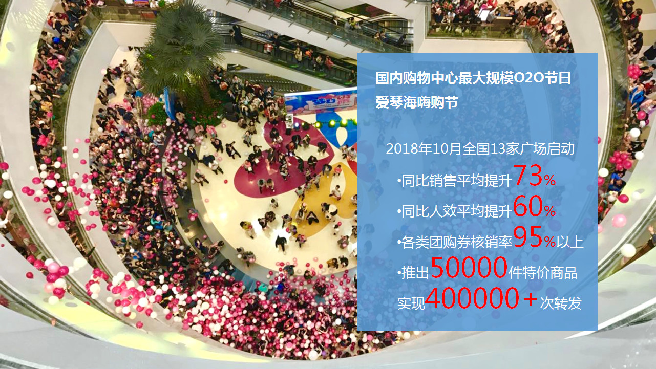 這個是我做的嗨購節,2018年10月份我們做過一次嗨購節,這里面的互動我給大家強調一下,我們有兩次跟品牌的互動,第一次是整體活動,我會把我的這些消費者都找到,從商品的角度,因為這有很多活動內容,這是最簡單的,我第二次還有精準營銷,精準營銷什么概念,剛才我記得哪位專家也講過,其實給我的商品、品牌的顧客特性和我購物中心VIP顧客特性是做了兩組數據,整個愛琴海的VIP是給他打上標簽的,打完標簽之后我會找其中幾個重要的品牌,他也想做的時候,我們當時在昆明跟幾個品牌合作,包括一個首飾,包括護膚和化妝了,變成他把他的顧客標簽給到我,我在我VIP給他篩出來是他目標顧客群體的品牌,當時跟昆明一個品牌互動的時候,這個品牌用他的標簽輸到我的體系里面之后,最后出來五萬人是可以作為他的目標顧客。因為我活動直接推給這五萬人,是他在五年當中最高營業額的七倍,這就是精準營銷。所以我說這種數字化的運用,在愛琴海這邊已經應用了很多,從單一品牌到整個購物中心全在應用。