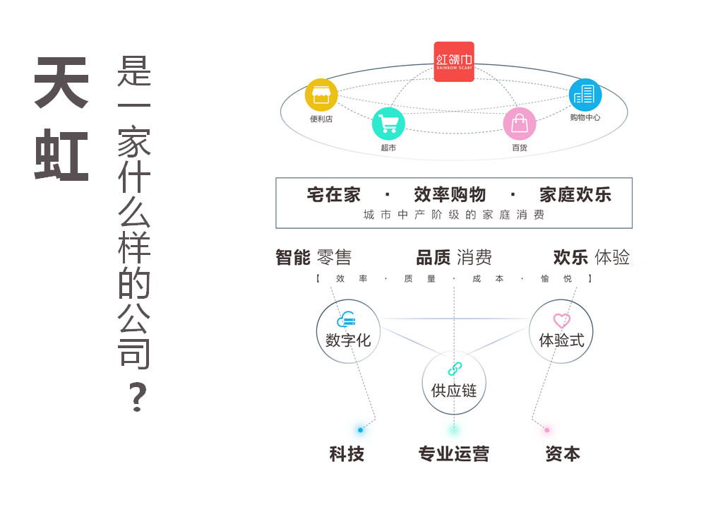 天虹到底是一家什么樣的公司,就是用這樣一張圖能夠展示出來天虹所有的業(yè)務邏輯,前面我們也講了,我們是用紅領巾統(tǒng)領我們所有實體店,形成一個完美的閉環(huán),包括我們現(xiàn)在在會員管理、數(shù)字化營銷、精準引流都是基于紅巾數(shù)字化的線上平臺,打通了我們所有實體店的各個環(huán)節(jié),形成了一個線上線下融合的新的形態(tài)。