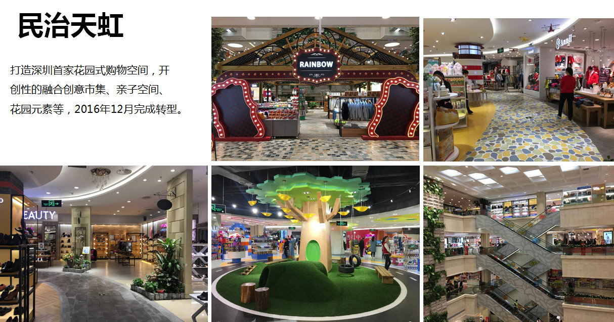 因為天虹的社區(qū)百貨非常多,我們社區(qū)百貨也遇到很大的挑戰(zhàn),面積不是很大,大概兩萬到三萬方,如果沒有那么大能夠引進大面積餐飲和配套,一個物業(yè)結(jié)構(gòu)不是很允許,同時經(jīng)營匹配上要滿足社區(qū)生活方方面面的時候,也不允許我們做那么大面積的餐飲,基于這樣一些思考,我們就做了一個嘗試,把我們的典型的社區(qū)店打造了首家深圳花園式的購物空間,我們引進很多集市、花園因素,讓消費者在你周圍就能夠感受到放松的環(huán)境,同時做到商品的匹配和互動,我們在體驗環(huán)境空間的同時也開展了很多的親子互動和社區(qū)的互動,也收到了非常好的效果,感覺大家不是像傳統(tǒng)的百貨了,其實這個投入也不是很大,找到一個好的設計師很重要。并不是說我們軟裝有很大的投資,其實你的設計也很重要。